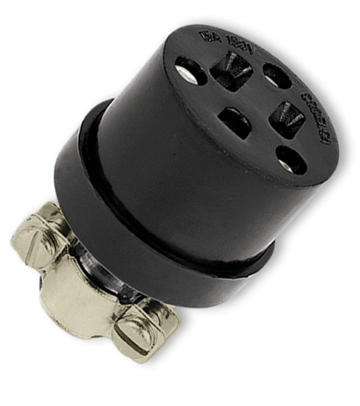 Toma aérea tripolar con conexión a tierra, fabricada en caucho resistente al impacto. Contactos en cobre con sistema doble en V para mayor presión de contacto. Incluye abrazadera de seguridad para fijación del cable. Diseñada para consumos medios hasta 15 A en aplicaciones donde se requiera protección eléctrica mediante puesta a tierra.