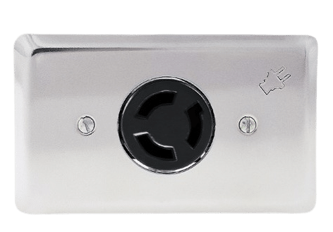 Tomacorriente empotrable tripolar con sistema de seguridad de media vuelta. Fabricado en plástico de ingeniería con contactos en cobre y tapa en acero inoxidable. Diseñado para trabajo continuo en equipos de consumo medio y trabajo pesado hasta 20 A en 250 V~. Ofrece mayor estabilidad mecánica y eléctrica en aplicaciones industriales o comerciales.